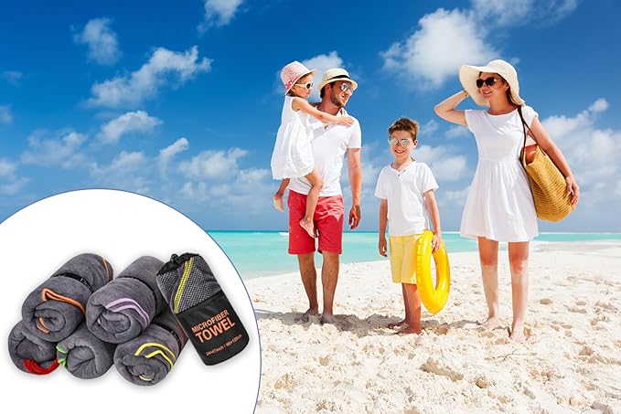 - Family Set Design: The towel set includes 6 pack microfiber towels and a breathable mesh bag, each towel size: 24 "x 48". To facilitate family members distinguish their own towels, each towel edge seams in different colors. This microfiber towel is a great choice for your family.