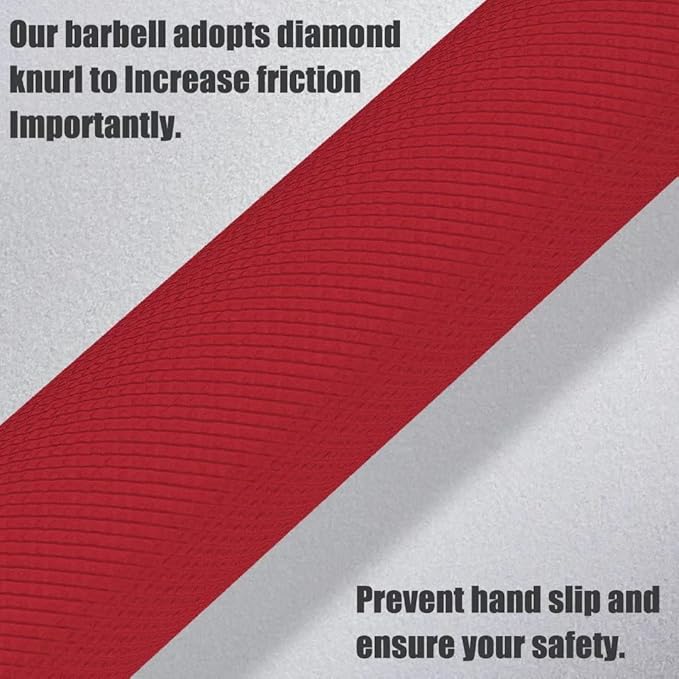 - 【KNURLED HANDLES】This Olympic barbell adopts diamond knurl for improving grip. These knurls with a 1.2mm medium-level knurling, increase friction, And it can increase the safety and ensure comfort when you exercises.
