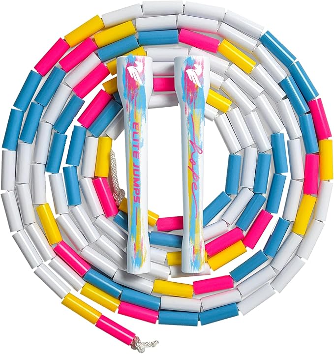- Easy to Size & Adjust: Simply adjust the length of this exercise jump rope quickly. The 10' length will fit jumpers up to 6'4" tall. Shorten/resize the adult jump rope beaded as needed by loosening the washer/tie on one end the handle, removing beads and cutting the excess cord. Now you are ready to jump!