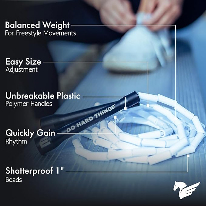 - Quality Materials; We make high quality products for competitive jump rope athletes. This Do Hard Things skipping rope features our 5" unbreakable plastic polymer handles and 1" shatterproof plastic beads. This adjustable jump rope is a durable workout jump rope that can be used indoors/outdoors.