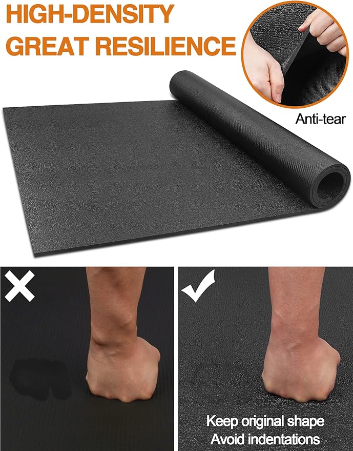 - Exercise Bike Mat for Carpets and Floors: The surface of equipment exercise mats are sleek thus preventing dust and dirt from getting into the parts of your workout equipment. This helps you prolong your expensive exercise equipment's lifetime. Plus, the sweat resistance gym mat is able to keep your carpets and floor dry and in a good condition without indentations and scratches, which is highly recommended to use on flat carpets or hardwood floors.