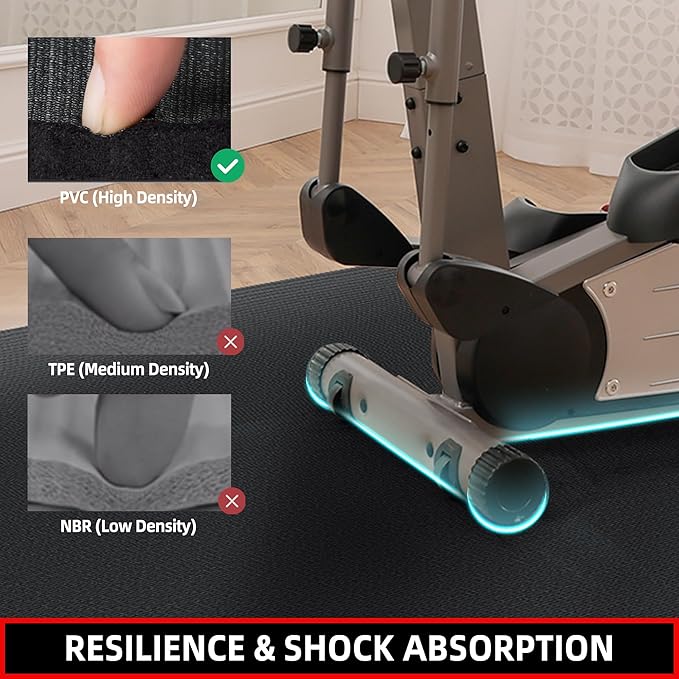 - All-Purpose Mat for Your Needs: Versatile mat for under exercise equipment and workouts; act as a treadmill mat for hardwood floors, elliptical mat, rowing machine mat, exercise bike mat, or mats for exercise equipment like weight benches; your ideal workout mats for home gym like jump rope, boxing, HIIT, Cardio; suitable for low-intensity exercise like yoga, stretching