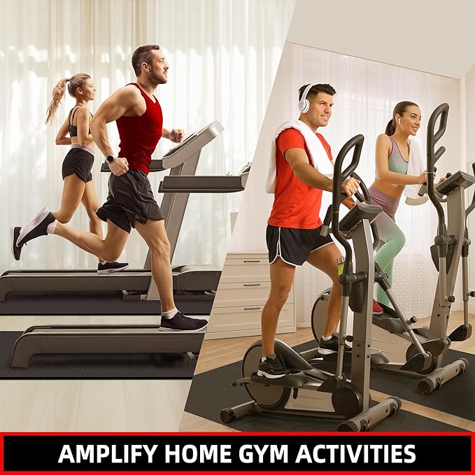 - All-Purpose Mat for Your Needs: Versatile mat for under exercise equipment and workouts; act as a treadmill mat for hardwood floors, elliptical mat, rowing machine mat, exercise bike mat, or mats for exercise equipment like weight benches; your ideal workout mats for home gym like jump rope, boxing, HIIT, Cardio; suitable for low-intensity exercise like yoga, stretching