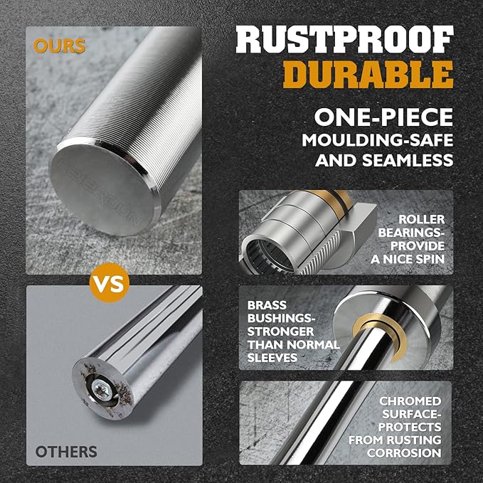 - 【Durable】210,000PSI tensile strength of solid cold rolled steel and black phosphate coating give the curl bar good rust resistance. And the brass bearings in the sleeve and one-piece design will extend the life of the bar.
