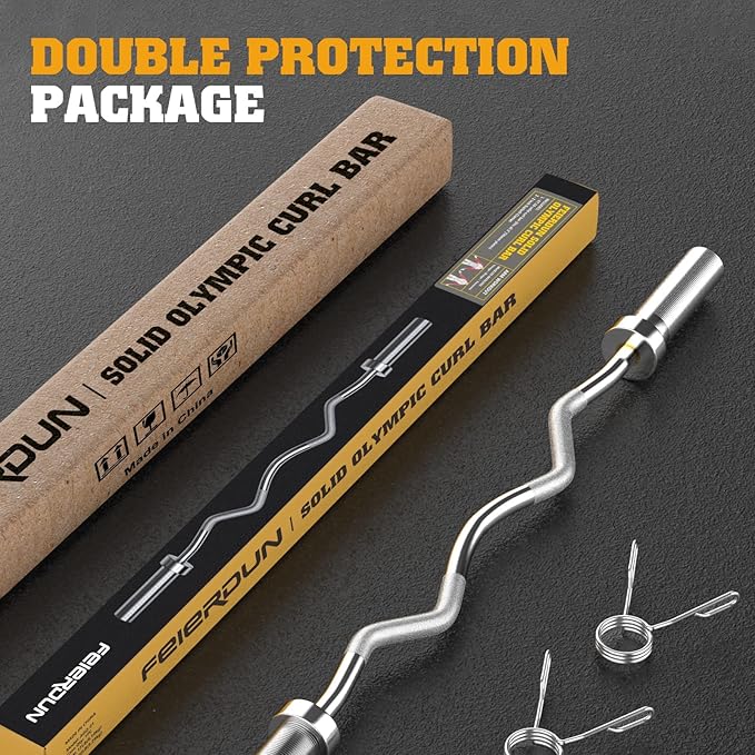 FEIERDUN Olympic EZ Curl Bar - 47" Weightlifting (390LBS Capacity), 2-Inch Weight