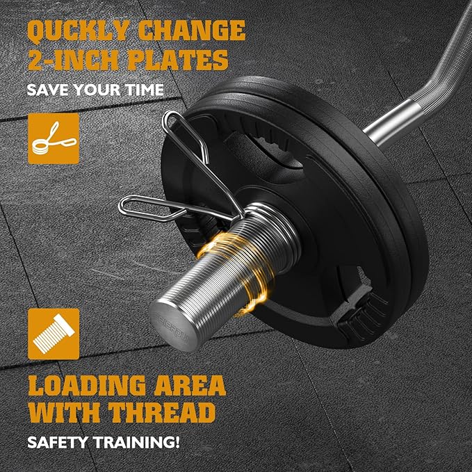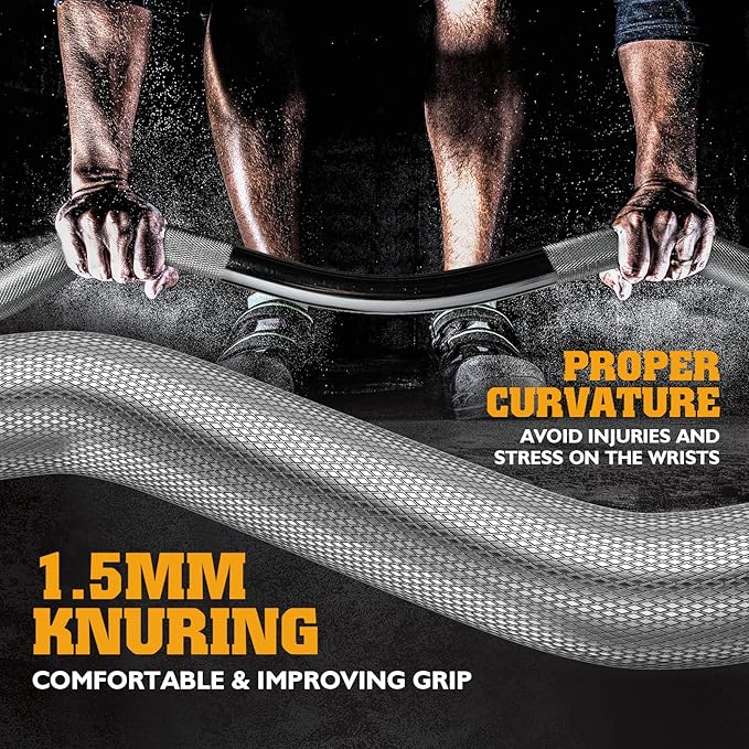 - 【Enhanced Safety】Our curl barbell is user friendly. The right grip angle and rotatable bearings at the sleeve can put you in a very comfortable position.