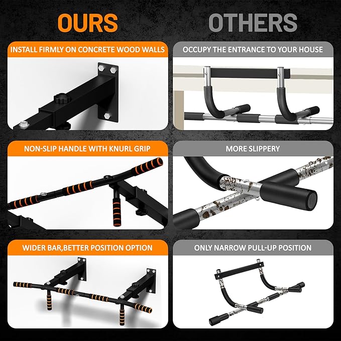 - High Weight Capacity: This Wall Mounted Pull Up Bar can support up to 300 pounds, making it suitable for users of all sizes and intense training sessions.