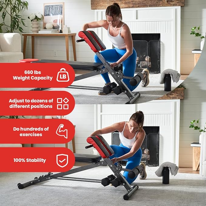 - Perfect for Hyperextensions and Ab Work - Weight bench adjustable for 100s of exercises. Replaces multiple weight benches for home gym. Sturdy and highly-rated among workout benches for home use.