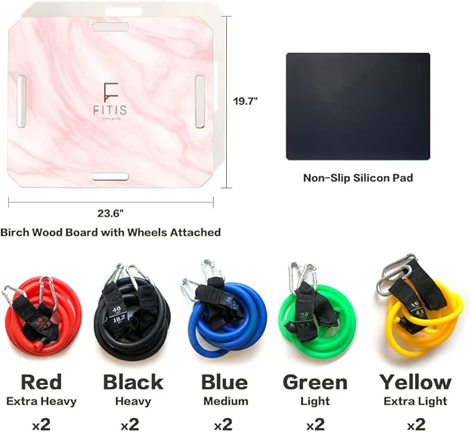 - ✅ Mega-Value Pilates Reformer Equipment: This exercise equipment set of 1 incline board, 5 resistance bands, 2 hand grips, 2 ankle straps, and door anchor makes an affordable alternative to the expensive Pilates reformer machine for home.