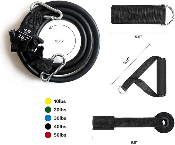 - ✅ 5 Resistance Levels: This home workout equipment has a max resistance level of 150lb. It comes with 5 latex workout bands of 10lbs, 20lbs, 30lbs, 40lbs, and 50lbs resistance levels, in different colors for easy identification.