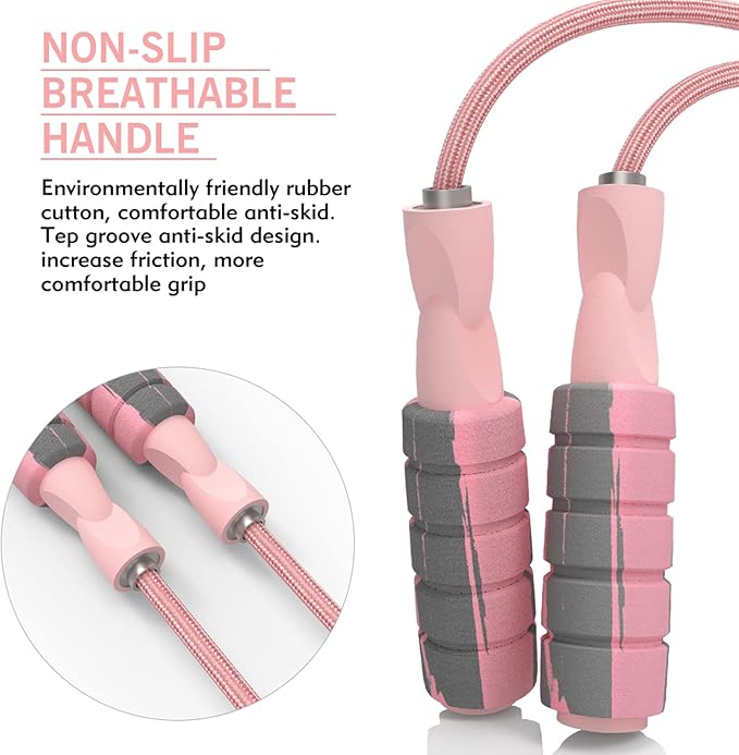 - Foam Handle: Comfortable handle makes it easy to grasp and carry, which makes your hands feel comfortable and non-slip during skipping,instantly motivates your excersize goals