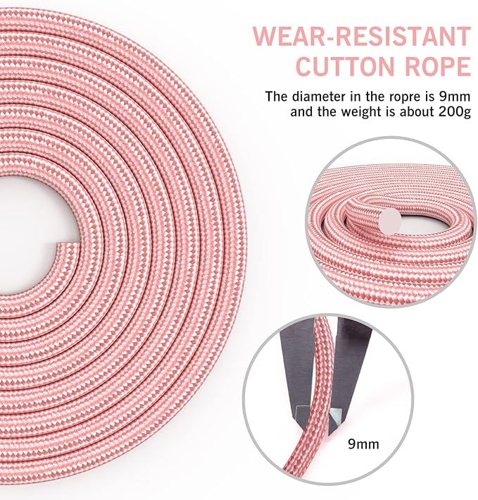 - Adjustable:The skipping ropes is 9.19 feet long and 0.354 inches(9mm) in diameter, 0.485 lbs weight. are long enough to meet the skipping needs of adults or children, and you can be freely adjust to the length you want