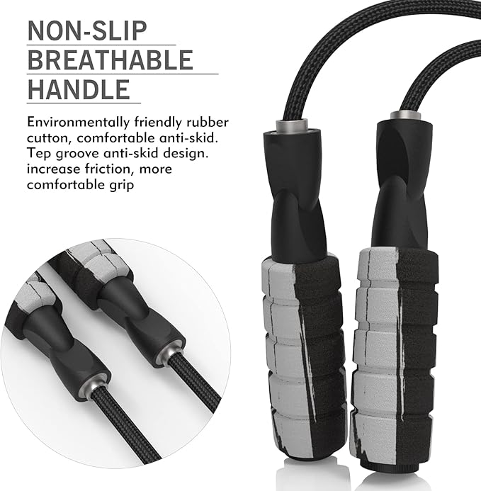 • Foam Handle: Comfortable handle makes it easy to grasp and carry, which makes your hands feel comfortable and non-slip during skipping,instantly motivates your excersize goals
