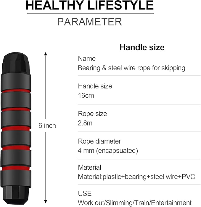 - Foam Handle: Comfortable handle makes it easy to grasp and carry, which makes your hands feel comfortable and non-slip during skipping,instantly motivates your excersize goals