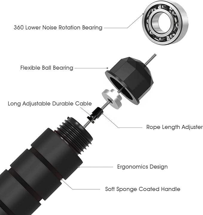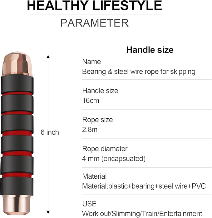 - Foam Handle: Comfortable handle makes it easy to grasp and carry, which makes your hands feel comfortable and non-slip during skipping,instantly motivates your excersize goals