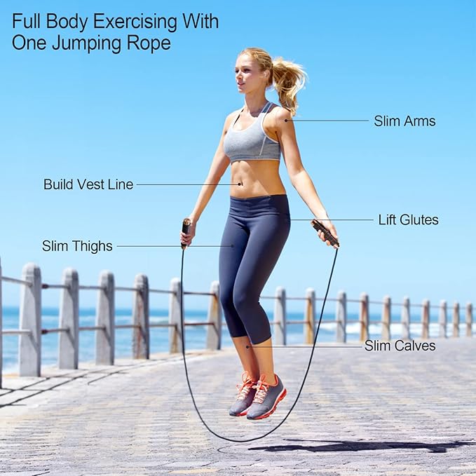 - Jump Ropes fitness: Jumping rope exercises fits aerobic training, it can burn calorie and improve muscle tension of the whole body. No matter you’re women or men, kids or adults, beginner or an experienced person, you can start jumping ropes anytime and anywher