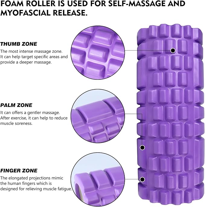 - 【Partition Grid Design】13 Inches X 5.5 Inch Diameter, Lightweight Massage Roller With triple grid massage zones, it mimics the finger , palm and thumb of hands