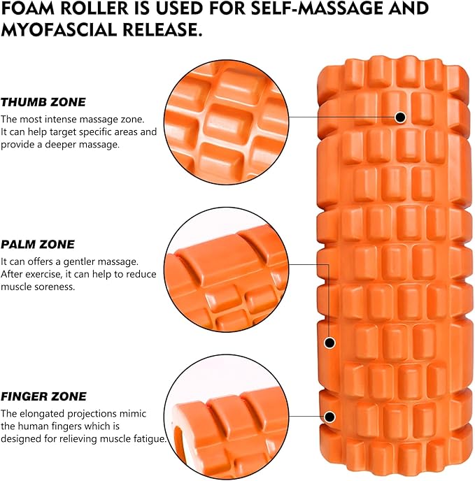 - 【Partition Grid Design】13 Inches X 5.5 Inch Diameter, Lightweight Massage Roller With triple grid massage zones, it mimics the finger , palm and thumb of hands