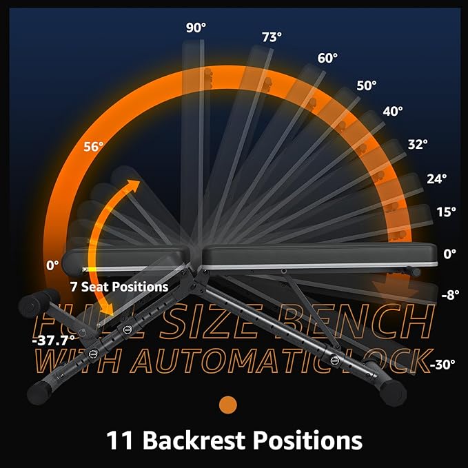 - 2024 ULTIMATE UPGRADE: VERSATILE ADJUSTABLE WEIGHT BENCH: Featuring 10 backrest and 7 seat adjustments, including negative angles, it caters to all your fitness needs. The new 90° upright backrest allows for more training options.Plus, standard features like quick folding and wheels for easy mobility. This comprehensive upgrade is a must-have for any fitness enthusiast!