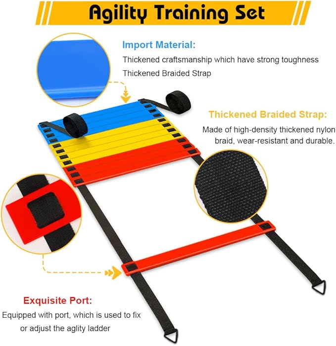 - [Speed Agility Training] Agility ladder can improve the ability of fast footwork. It practice the flexibility, balance, and coordination of the body. Agility Ladder is the most common training tool to improve athlete’s performance including agility, speed, explosiveness, balance, footwork, and cardiovascular health.