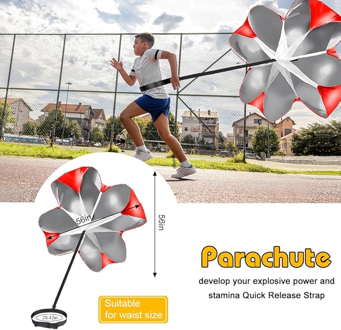 - [Resistance Parachute with Belt and Bands Speed Training Set] Parachute with fast release waist belt include for improved speed, stamina, strength, and acceleration chute releases while running for over speed training.
