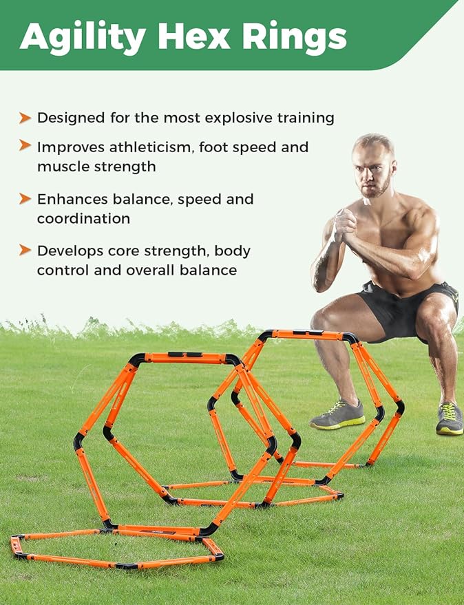 • 5 Set GHB Hexagonal Agility Rings Connector:The connector clips included help you arrange these rings into the order you prefer.Easy to connect,you can change the shape and function of the hexagonal agility ring to meet different speed agility training