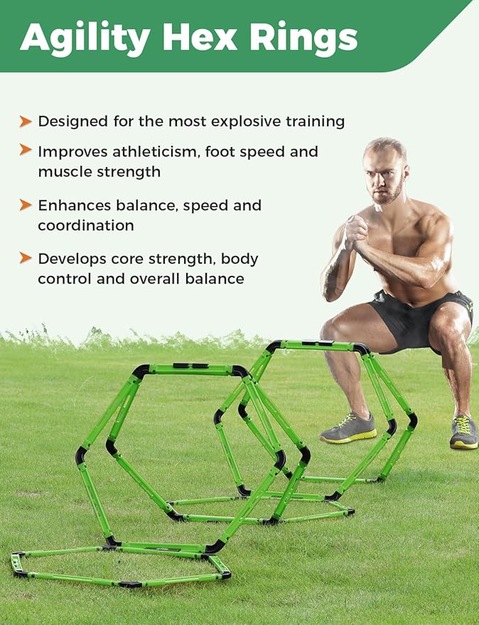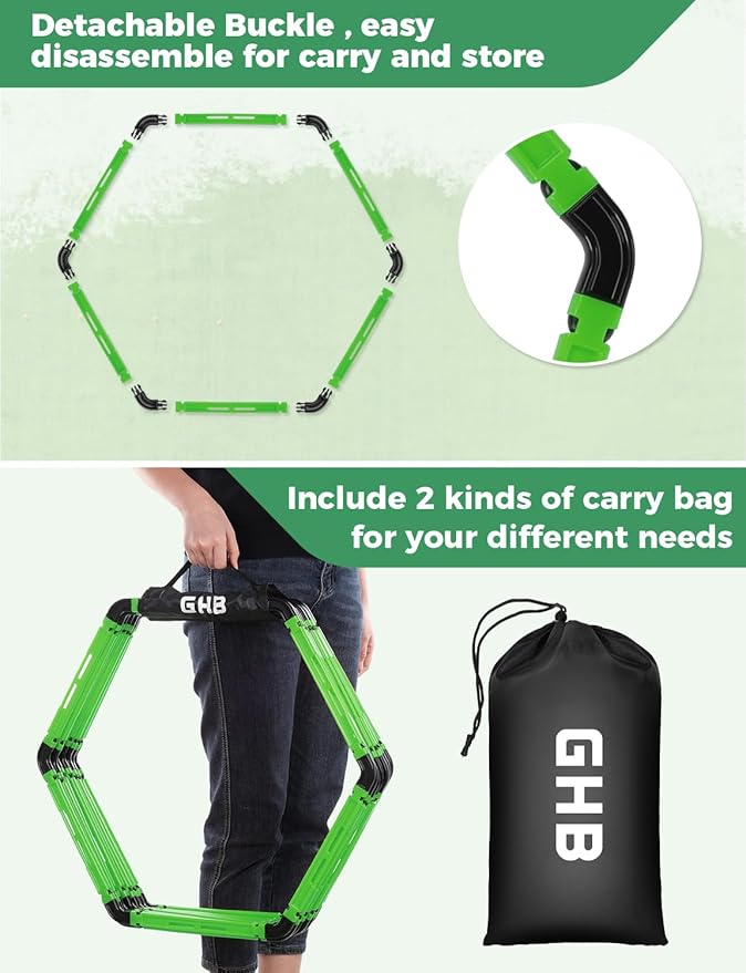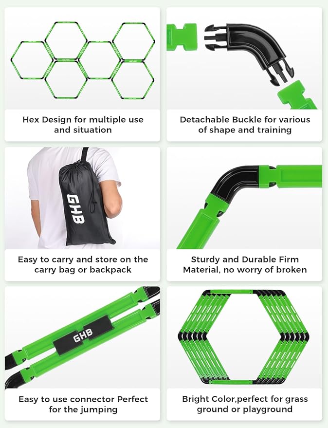 • 5 Set GHB Hexagonal Agility Rings Connector:The connector clips included help you arrange these rings into the order you prefer.Easy to connect,you can change the shape and function of the hexagonal agility ring to meet different speed agility training