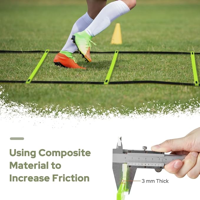 • Ideal Tool for Outdoor Sports Training: The agility ladder is very helpful for footbald, soccer, basketball drills, hockey, tennis, etc as it can increase your speed, leg strength and improve your balance ability