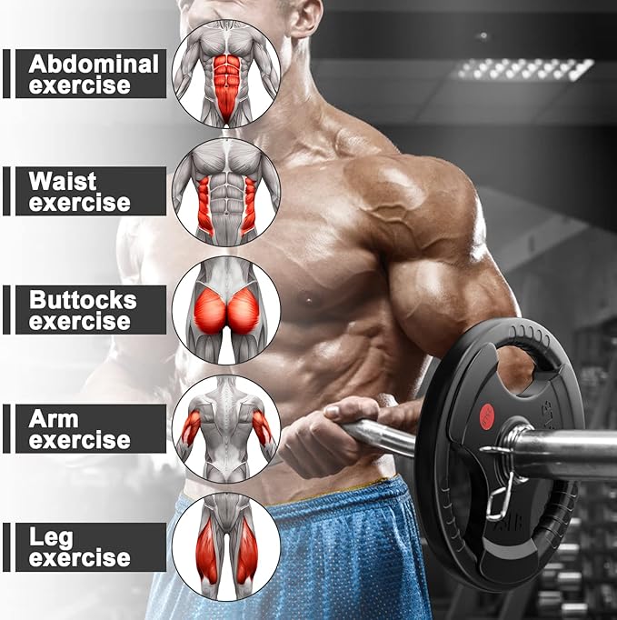 - 🔥Versatile Usage: Our barbell weight plates can be used for a variety of exercises, including squats, deadlifts, bench presses, weightlifting and CrossFit-training. etc. Making them an essential addition to any home garage or commercial gym.