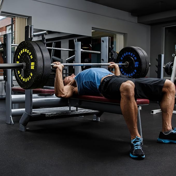 - 🎯 Quick Identification: Durable rubber construction with a colored fleck design, makes the Olympic weight plates easier to quick identification and pick up. Stainless steel hole can slide on and off weight bars with ease. Fit for standard 2-inch bars.