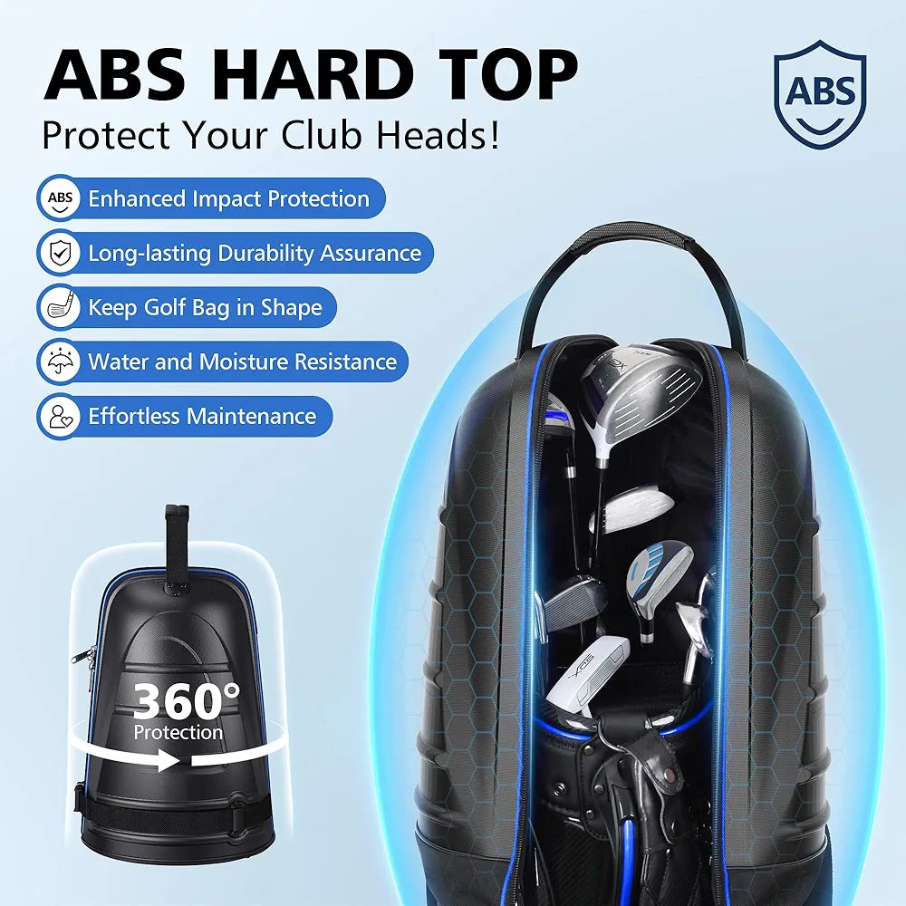 - Maximum Protection - The Golf Travel Bag features a hard shell ABS top, a soft-sided 1680D ballistic nylon fabric body, and a thickened cushion layer, ensuring your golf clubs are protected from collisions and damage. Excellent waterproofing and durability protect your equipment from rain and moisture.