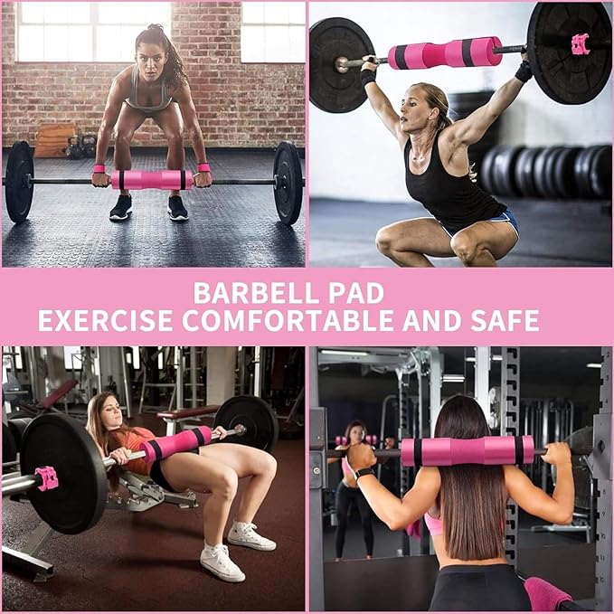 - Our deluxe barbell pad is engineered with polyurethane and rubber and features a thick, high-density foam cushioning to ensure unparalleled comfort and support during even the most intense squats, hip thrusts, and weightlifting sessions. Say goodbye to discomfort and bruising caused by heavy loads on your shoulders and hips – our barbell pad ensures a cushioned experience every time you train.