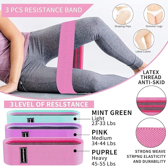 - Elevate your lower body workouts with our hip resistance bands, meticulously crafted to target and strengthen your glutes, hips, and thighs. These bands offer a spectrum of resistance levels—ranging from light to strong—enabling you to sculpt a firm, toned lower body.