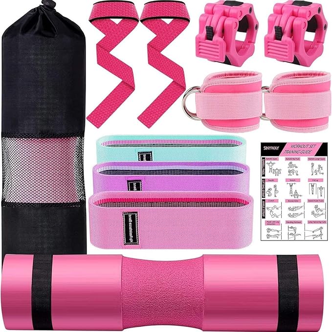 Gym Barbell 11-Piece Set Pink Pad for Squat