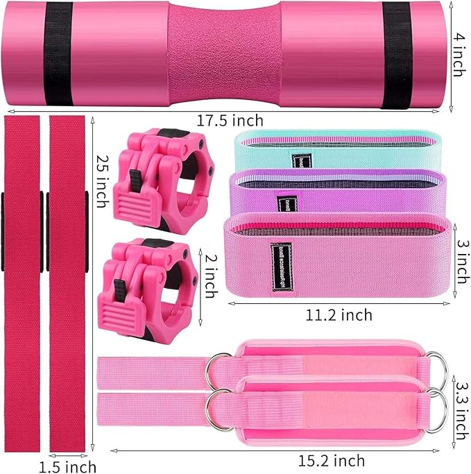 - Revolutionize your fitness regimen with our 12-piece barbell pad set, meticulously curated to provide you with everything you need for a well-rounded and effective workout experience.