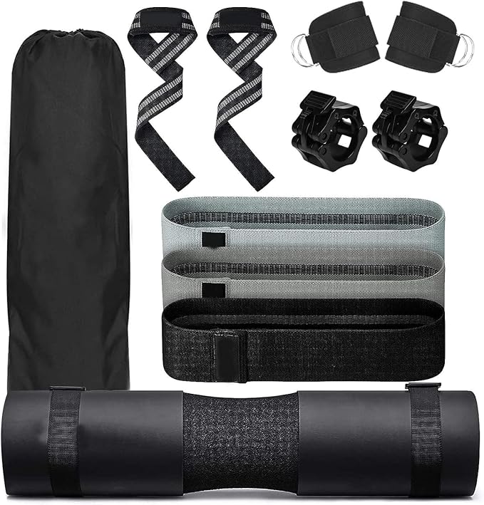 - Revolutionize your fitness regimen with our 12-piece barbell pad set, meticulously curated to provide you with everything you need for a well-rounded and effective workout experience.