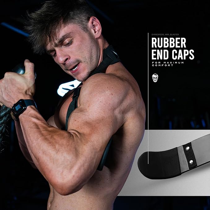 - GET BIGGER ARMS WITH BETTER ISOLATION - Gymreapers arm blaster is the industry standard posture supporting tool for your arm workouts. The blaster supports your body by forcing you to tuck your elbows by your side, enabling proper posture while isolating your arms when weightlifting and bodybuilding. With our trademark skull logo and all black color our arm blaster is a must have in your training arsenal.