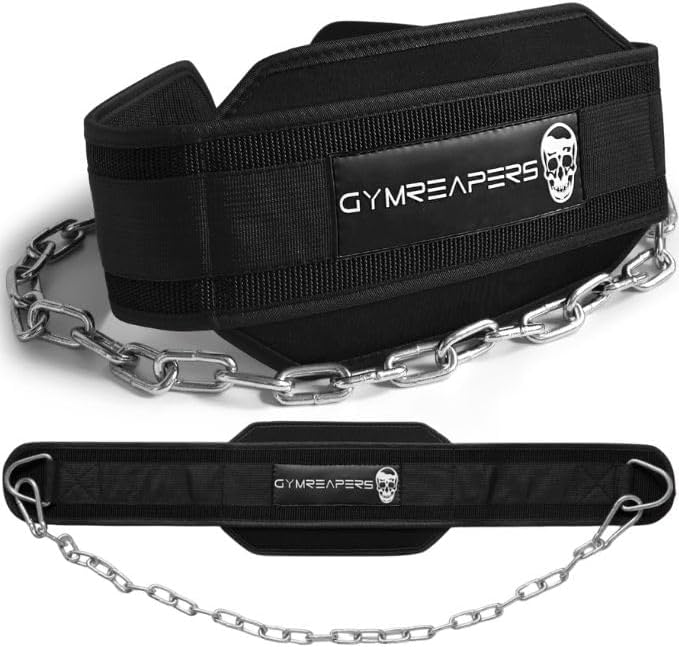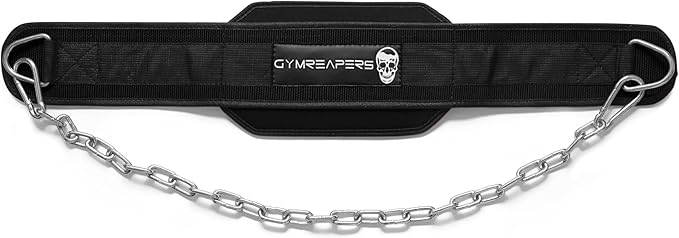 - COMFORTABLE, AESTHETIC, AND EFFECTIVE - Gymreapers focuses on quality equipment, our dip belt is no different. Our form fitting dip belt with it's steel chain can help blow up your triceps, chest, lats, and biceps.