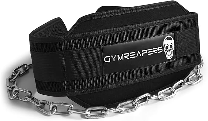 - COMFORTABLE, AESTHETIC, AND EFFECTIVE - Gymreapers focuses on quality equipment, our dip belt is no different. Our form fitting dip belt with it's steel chain can help blow up your triceps, chest, lats, and biceps.