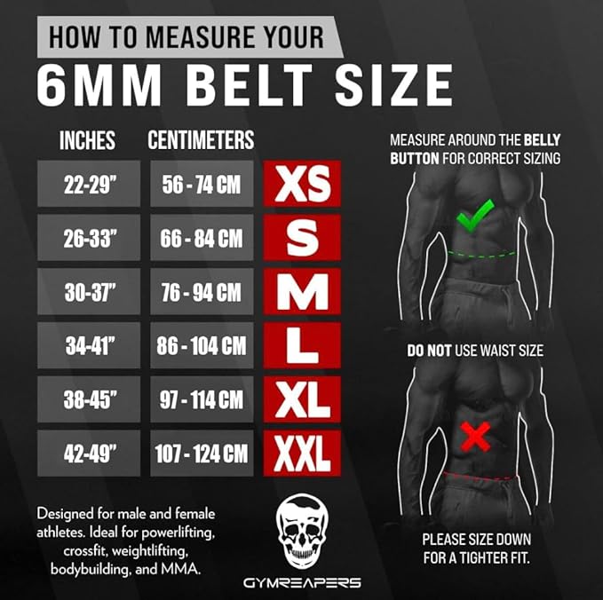 • TOTAL CORE SUPPORT & STRENGTH - Our Gymreapers weight lifting power belt provides complete support and protection for your back, spine, and core for squats, deadlifts, and any form of compound movements. Order them now and try it today. You'll represent a brand that stands for something with our nothing is given, everything is earned mentality. The thick power belt will provide the core support you need for any lift. *NOTE - PLEASE SIZE UP IF INBETWEEN SIZES*