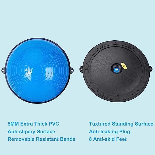 - ๐๐๐๐ ๐๐ง๐ ๐๐ฎ๐ซ๐๐๐ฅ๐: We prioritize your safety and health. Our half ball is made of non-toxic PVC, avoiding allergies and harm to your well-being. The 12-layer anti-skid circle surface, anti-slide base, and anti-burst technology provide a secure and stable training platform, even when you're sweaty. The 5mm thickened ball design and tested anti-burst technology guarantee a safe and durable user experience.