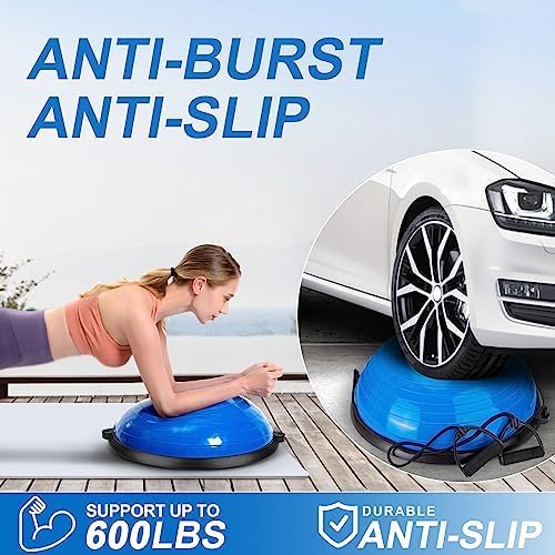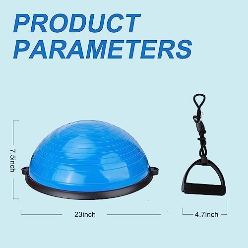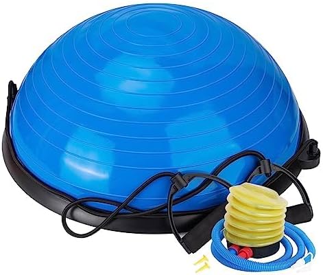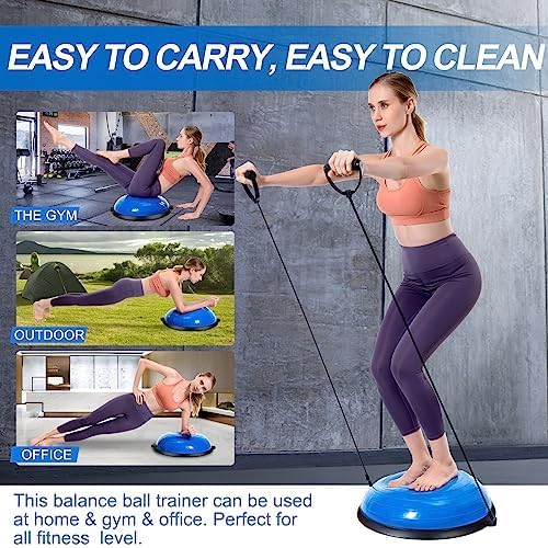 - ๐๐จ๐ฆ๐ฉ๐ฅ๐๐ญ๐ ๐๐จ๐ซ๐ค๐จ๐ฎ๐ญ ๐๐๐๐ค๐๐ ๐: Our half-dome stability ball comes with two detachable resistance bands that feature soft foam handles. Modify your workout and increase difficulty by attaching different bands for added resistance. Additionally, a complimentary foot pump is included for quick inflation, and the high-quality air valve prevents air leakage, ensuring durability.