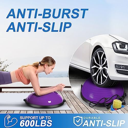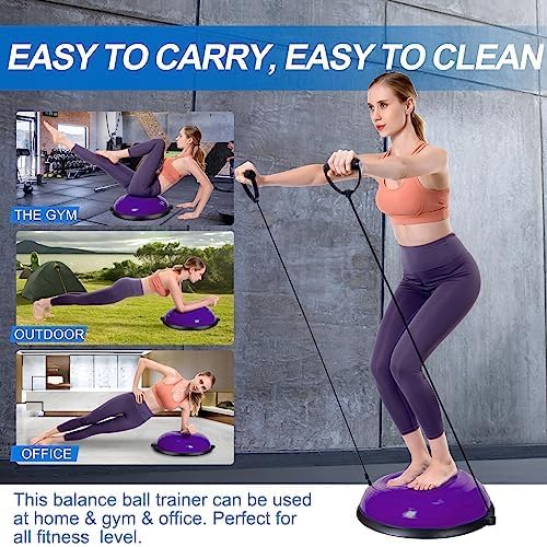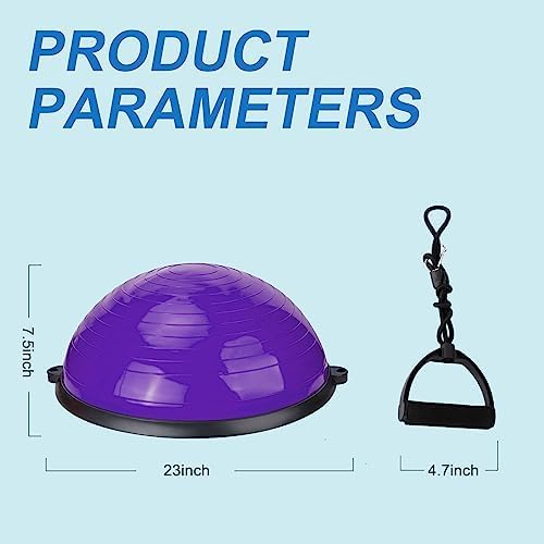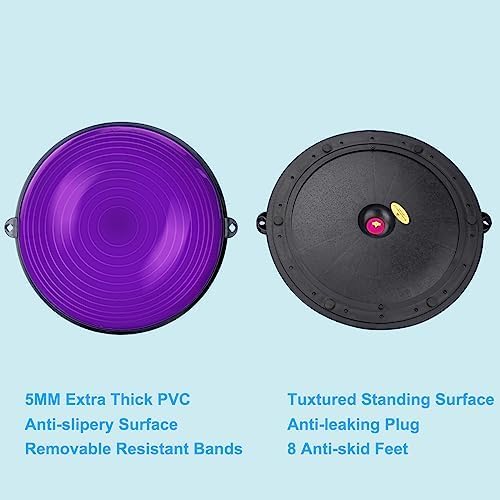 - ๐๐จ๐ฆ๐ฉ๐ฅ๐๐ญ๐ ๐๐จ๐ซ๐ค๐จ๐ฎ๐ญ ๐๐๐๐ค๐๐ ๐: Our half-dome stability ball comes with two detachable resistance bands that feature soft foam handles. Modify your workout and increase difficulty by attaching different bands for added resistance. Additionally, a complimentary foot pump is included for quick inflation, and the high-quality air valve prevents air leakage, ensuring durability.