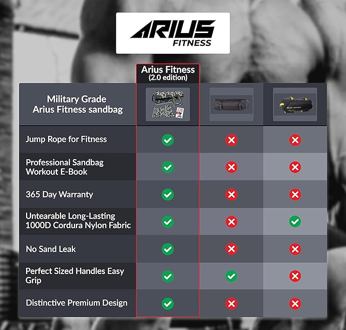 • ☑️ NO SAND LEAK: Our latest improved 2.0 weighted sandbag is made of 1000D Cordura nylon, the most durable and heavy-duty fabric that won't break or burst with Velcro closure The fitness sandbag features ultra-strong double stitching with nylon thread and a large zipper. The PVC backing ensures more durability and sturdiness too. We at Arius Fitness guarantee you will love your new sandbag so we offer a 1-year guarantee!