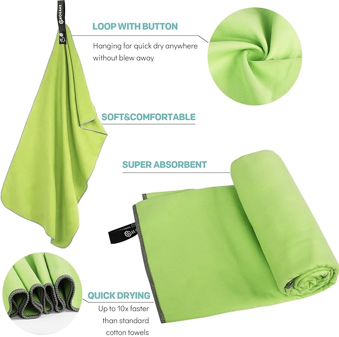 - SUPER ABSORBENT & QUICK DRYING: HOEAAS microfiber camping towel is made of soft and skin-friendly microfiber fabrics, which super absorbent and fast drying. Soaks up 5X its weight in water and dries nearly 10X faster than cotton towel, repeat use it a short time, no bad odors. So you never have to worry about your microfiber beach towels soiling or stinking up the rest of your gear. After dry your sweat or body water, Spread out or hang up the quick dry towel will be dry in minutes!