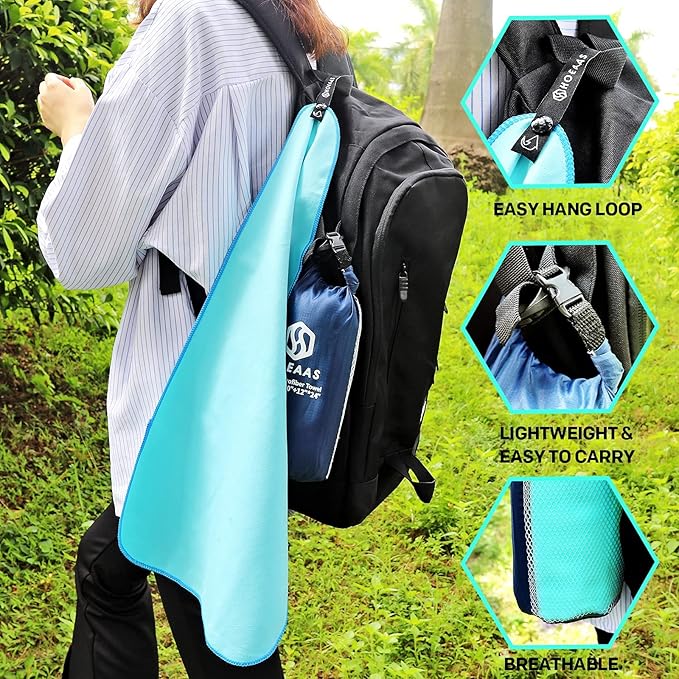 - MULTI-FUCNTIONAL QUICK DRY TOWEL & GIFT IDEA: Lightweight and compact microfiber towel for travel is super versatile for any situation. Such as backpacking, travel, camping, hiking, swimming, yoga, golf, gym, fitness, exercise. Perfect for covers your sun lounger, deck chair or camping undera beach umbrella&sun shelter. The travel towel also looks really fashionable and sporty, which makes it a great gift idea for your family and friends. Of course, if you have any problem, please contact us.