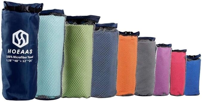 - SUPER ABSORBENT & QUICK DRYING: HOEAAS microfiber camping towel is made of soft and skin-friendly microfiber fabrics, which super absorbent and fast drying. Soaks up 5X its weight in water and dries nearly 10X faster than cotton towel, repeat use it a short time, no bad odors. So you never have to worry about your microfiber beach towels soiling or stinking up the rest of your gear. After dry your sweat or body water, Spread out or hang up the quick dry towel will be dry in minutes!