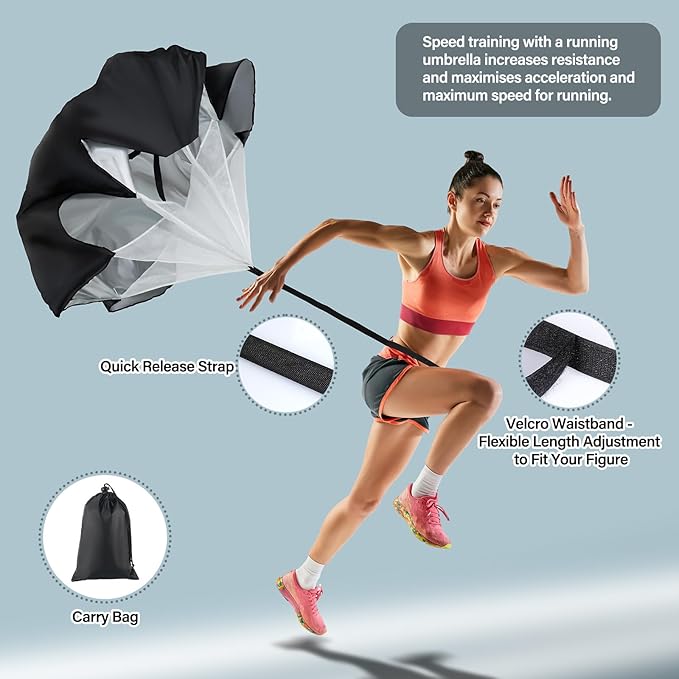 - Multi Sports Equipment - Equipped with 10 high-quality plastic disc cones,soft and tough,resistant to kick and pressure, quick recovery is not easy to deform,suitable for football training process of the discs and footwork exercises,improve body agility;With resistance parachute,belt Velcro design,the length of the flexible adjustment of the body to suit your shape,through the running parachute speed training to maximize the acceleration and the maximum speed of the running speed.