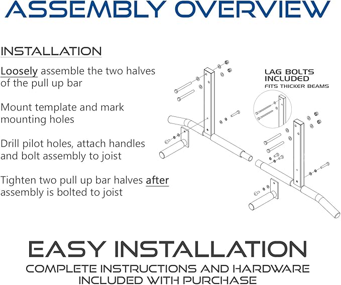 - TOTAL COMPATIBILITY: Joist mounting gets your workout space away from the wall and your installation is easy with Instructions, template, and all hardware provided including thru-bolts and lag bolts for compatibility with thicker beams
