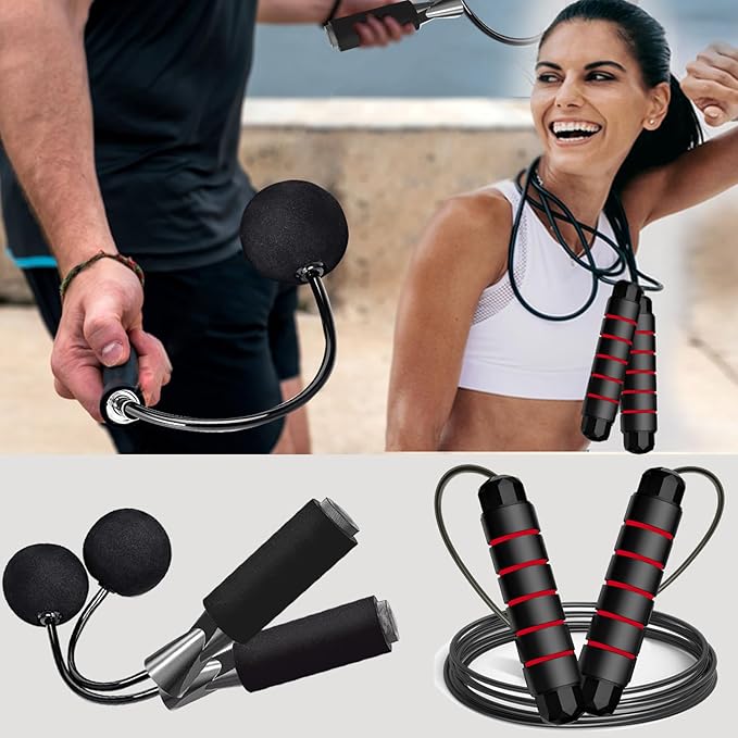 - 【SMOOTH FAST & NO MORE TANGLING】 - High quality ball bearings ensure smooth and rapid speed rotation, avoids the twisting, winding or bending like other fitness ropes,which brings your a perfect exercise of skipping rope.